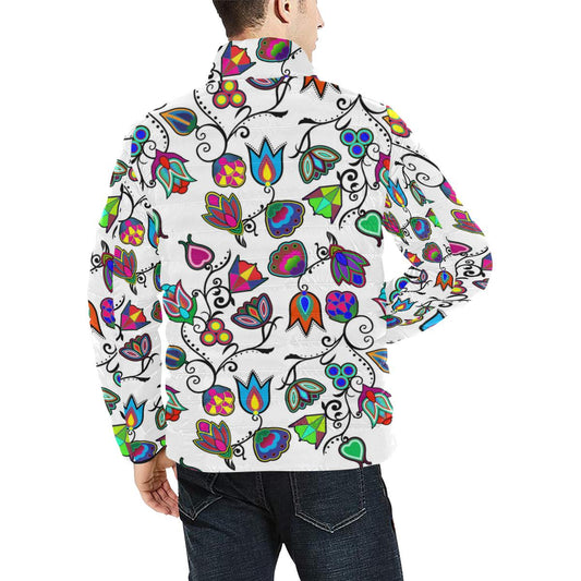 Floral Beadwork Seven Clans White Men's Stand Collar Padded Jacket