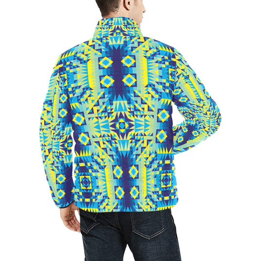 Kaleidoscope Jaune Bleu Men's Stand Collar Padded Jacket