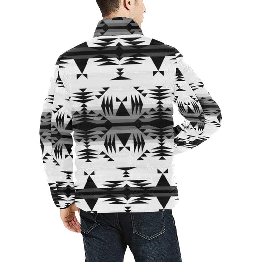 Between the Mountains White and Black Men's Stand Collar Padded Jacket