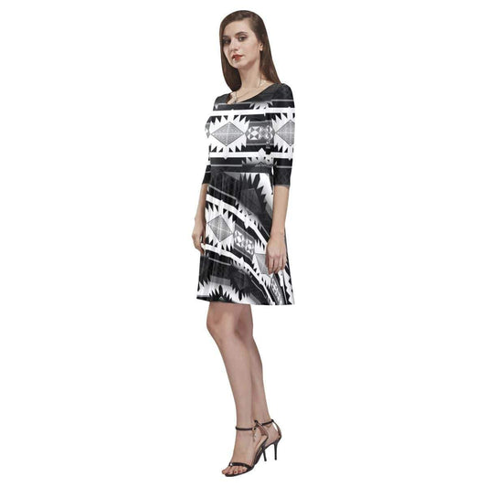 Okotoks Black and White Tethys Half-Sleeve Skater Dress