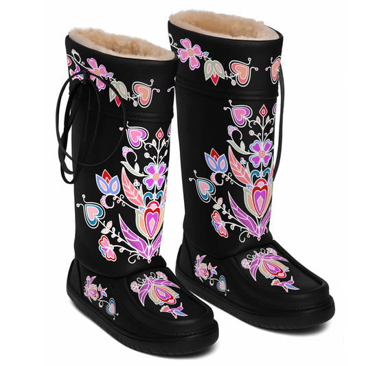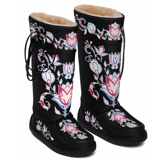 Step into winter luxury with our Premium 2025 MocLux Collection — a fusion of traditional Indigenous inspiration and modern comfort. Each pair of MocLux is designed with care, storytelling, and artistry, honoring the spirit of winter while celebrating Indigenous floral design.