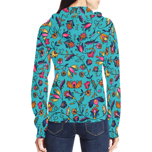 Copper Prairie Petals Turquoise Full Zip Hoodie for Women