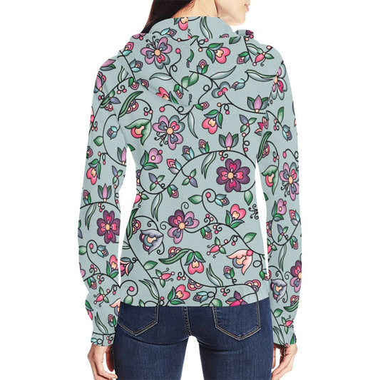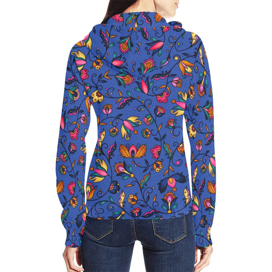 Copper Prairie Petals Blue Full Zip Hoodie for Women