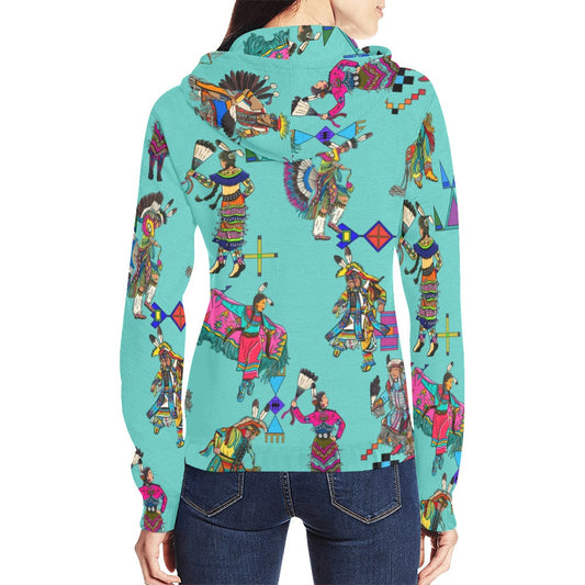 Grand Entry Dancers Eggshell Blue Full Zip Hoodie for Women