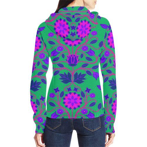 Indigenous Paisley - Green Full Zip Hoodie for Women
