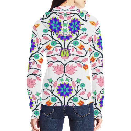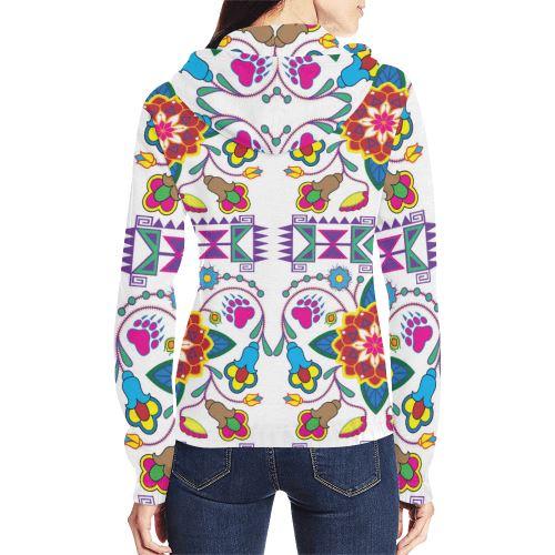 Floral Beadwork Seven Clans White Full Zip Hoodie for Women