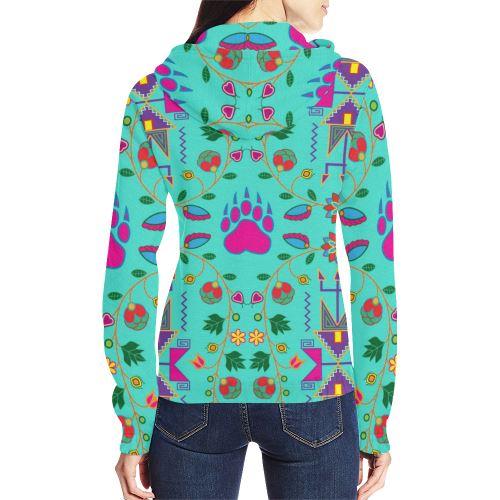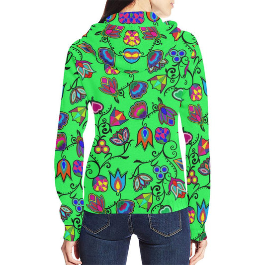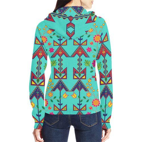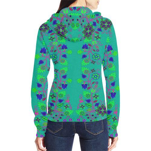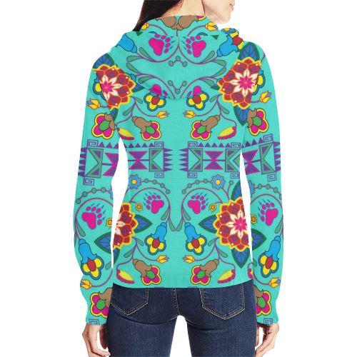 Floral Beadwork Four Clans Deep Lake Full Zip Hoodie for Women