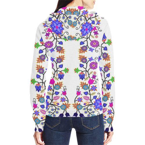 Floral Beadwork Four Clans White Full Zip Hoodie for Women