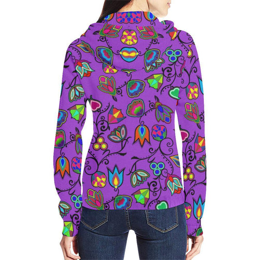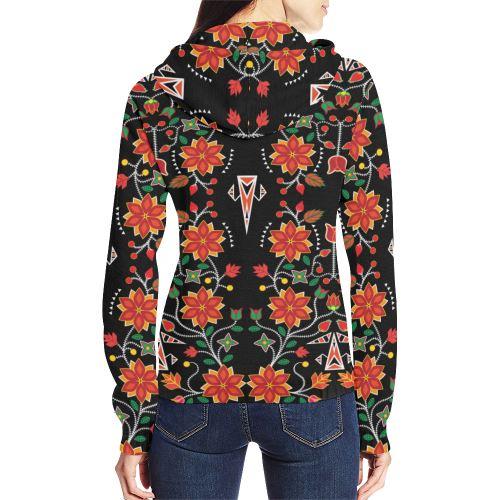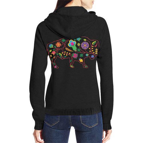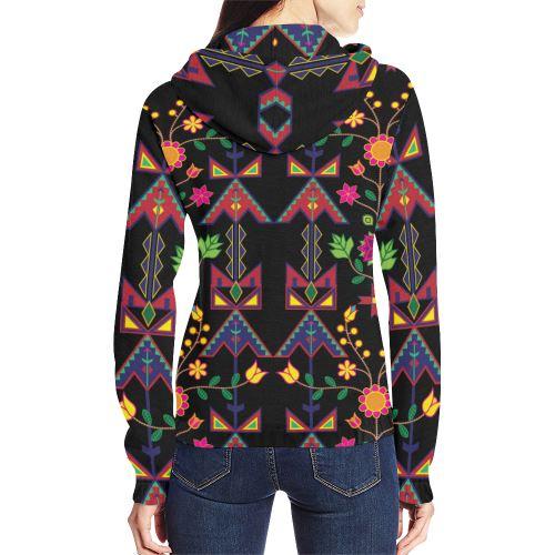 Floral Beadwork Four Clans Winter Full Zip Hoodie for Women