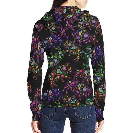 Neon Floral Buffalos Full Zip Hoodie for Women