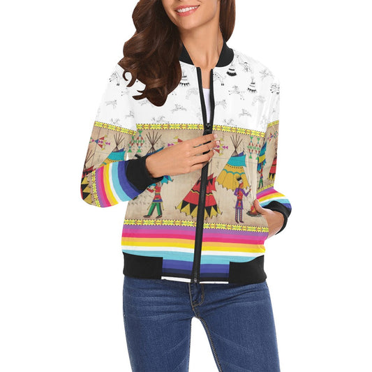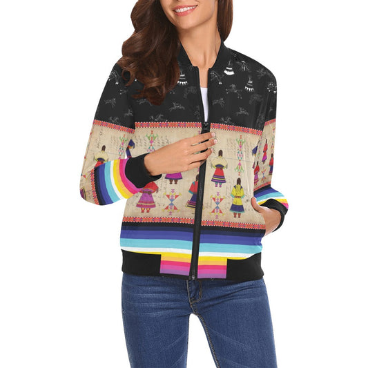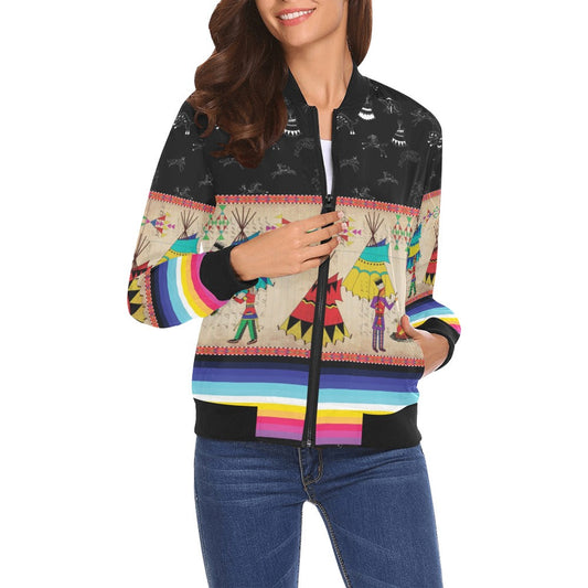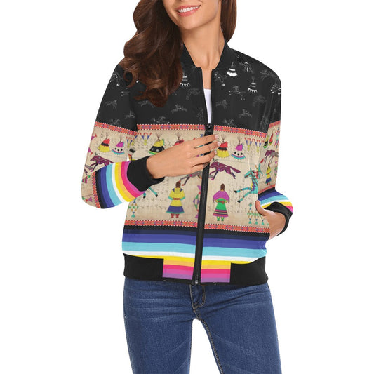 Ledger Round Dance Midnight Bomber Jacket for Women