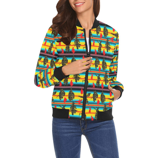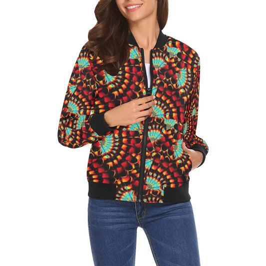 Hawk Feathers Fire and Turquoise Bomber Jacket for Women