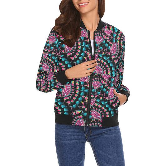Hawk Feathers Heat Map Bomber Jacket for Women