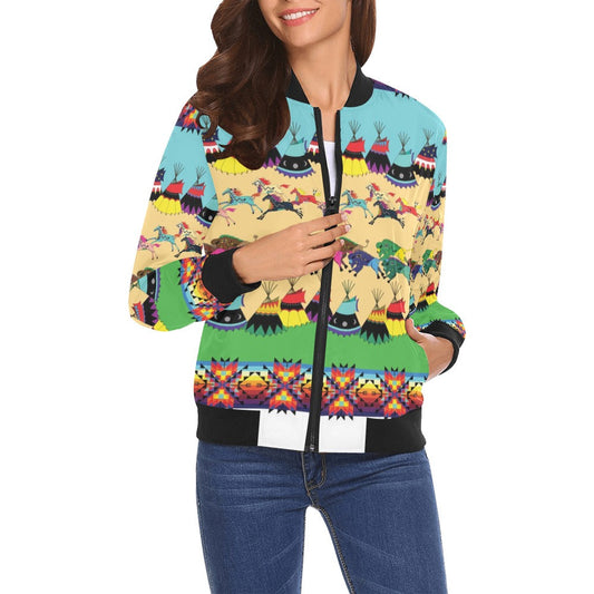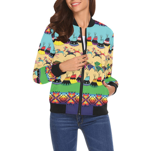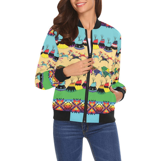 Horses and Buffalo Ledger Torquoise Bomber Jacket for Women