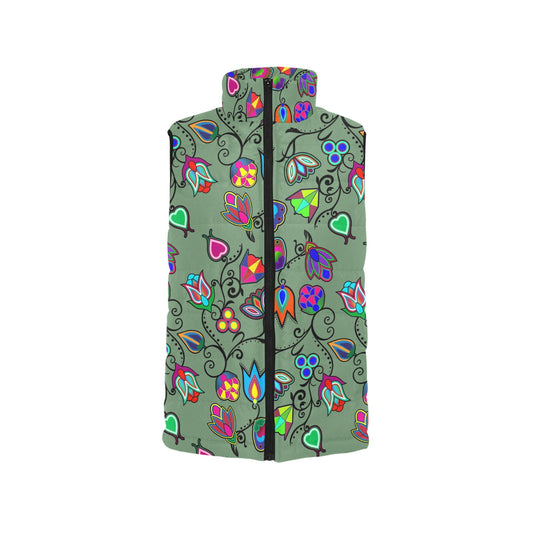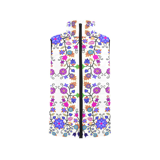 Floral Beadwork Seven Clans White Women's Padded Vest Jacket
