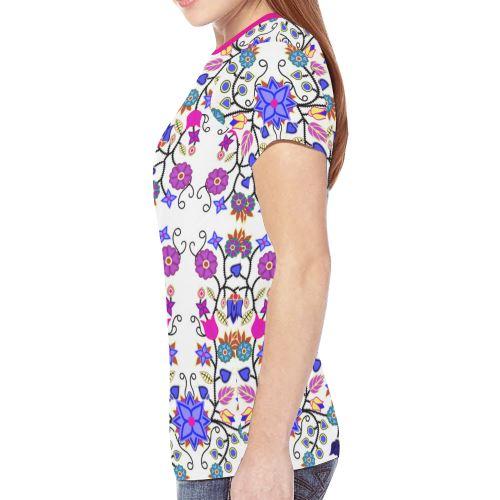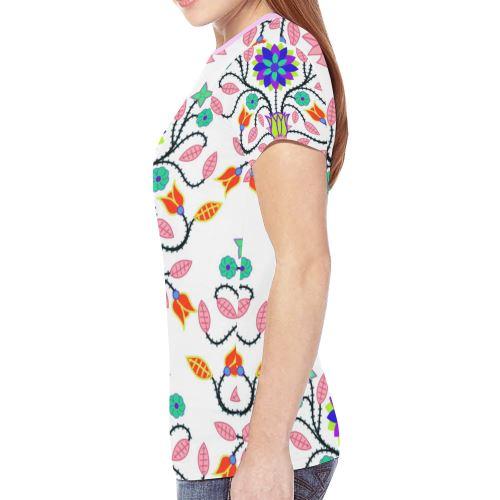 Floral Beadwork Seven Clans White New T-shirt for Women