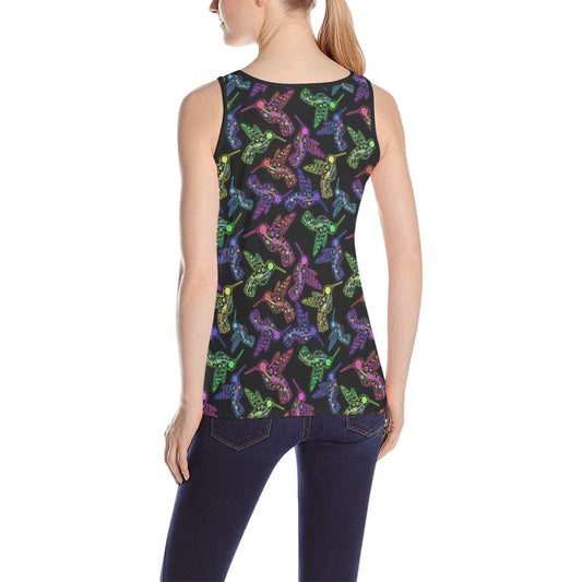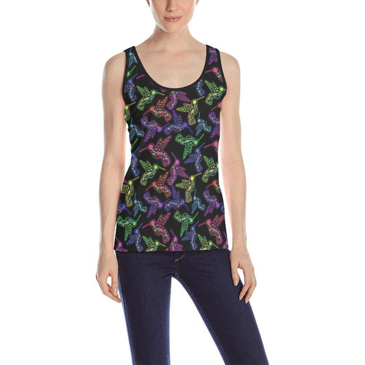 Neon Floral Hummingbirds Tank Top for Women