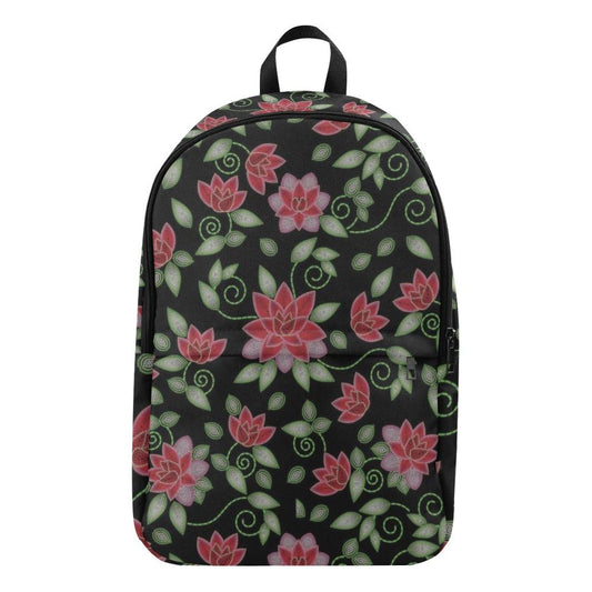 Berry Flowers Black Fabric Backpack for Adult