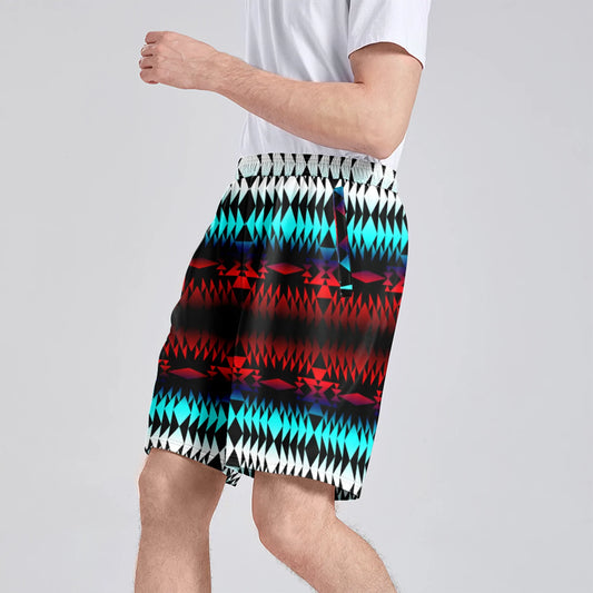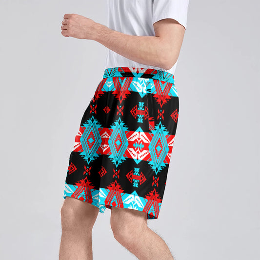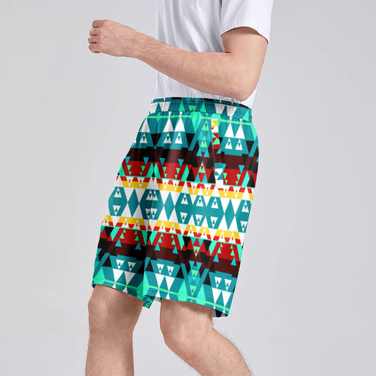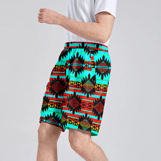 Fire Colors and Turquoise Teal Athletic Shorts with Pockets
