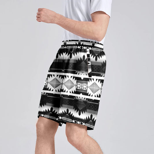 Between the Mountains White and Black Athletic Shorts with Pockets