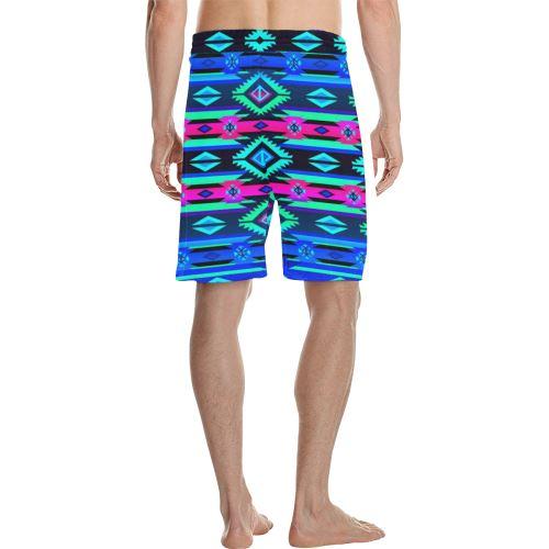 Fire Colors and Turquoise Orange Men's Casual Shorts