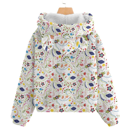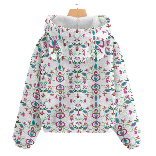 Quilled Divine White Kid’s Borg Fleece Hoodie With Ear