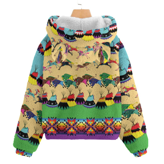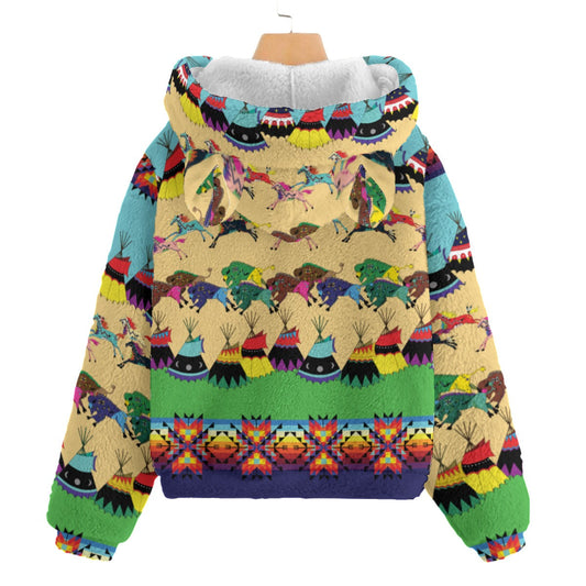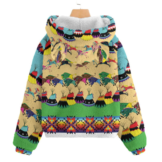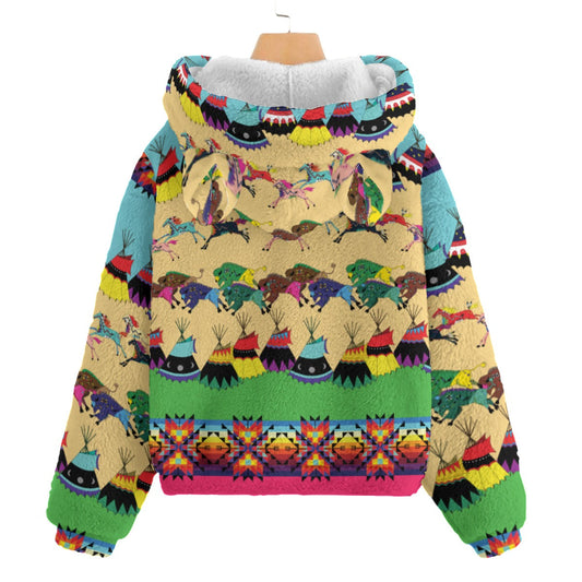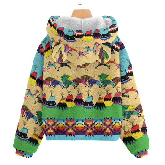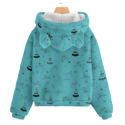 Horses and Buffalo Ledger Torquoise Kid’s Borg Fleece Hoodie With Ear