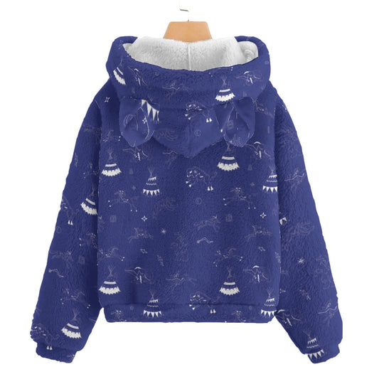 Horses and Buffalo Ledger Blue Kid’s Borg Fleece Hoodie With Ear