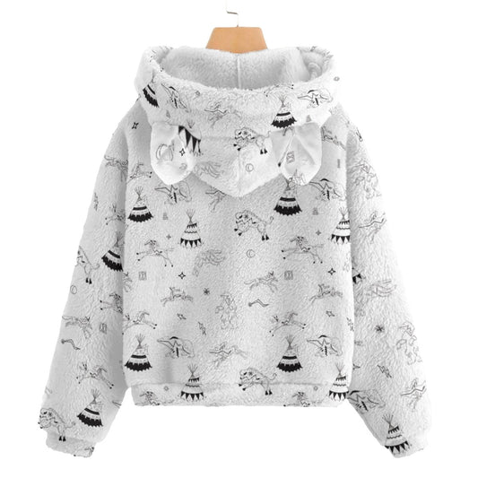 Horses and Buffalo Ledger White Kid’s Borg Fleece Hoodie With Ear