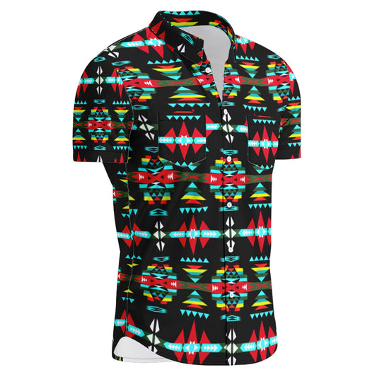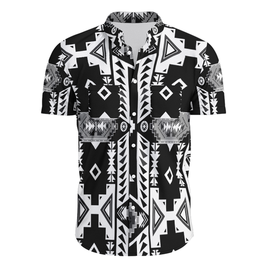 Indigenous Paisley Black Hawaiian-Style Button Up Shirt
