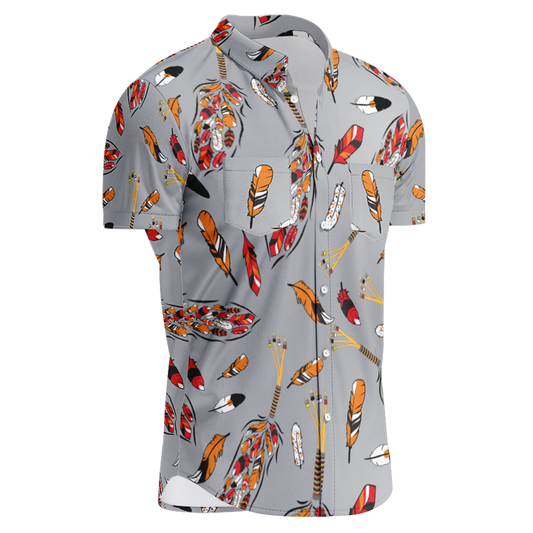 ECM Prayer Feathers Grey Hawaiian-Style Button Up Shirt
