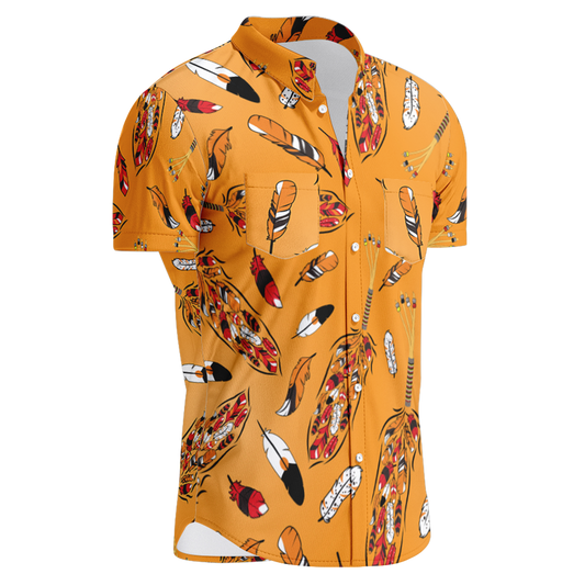 Regular price $24.50 USDRegular priceUnit price / perSale price $24.50 USDECM Prayer Feathers Orange Hawaiian-Style Button Up Shirt
