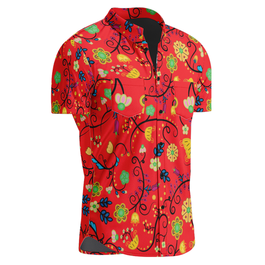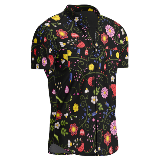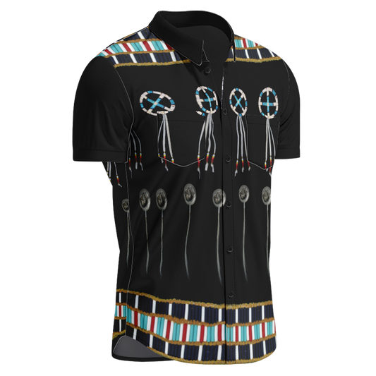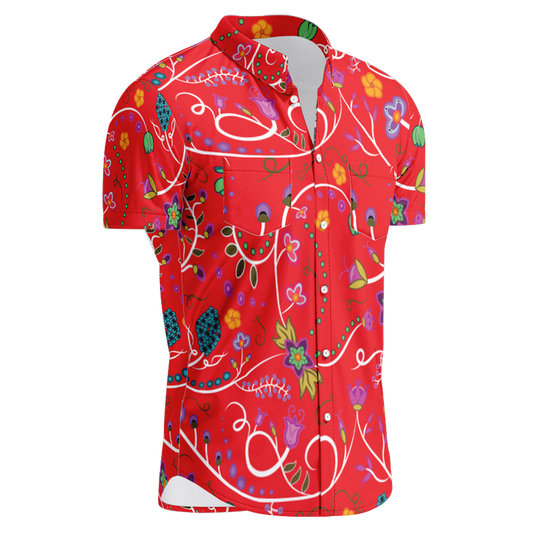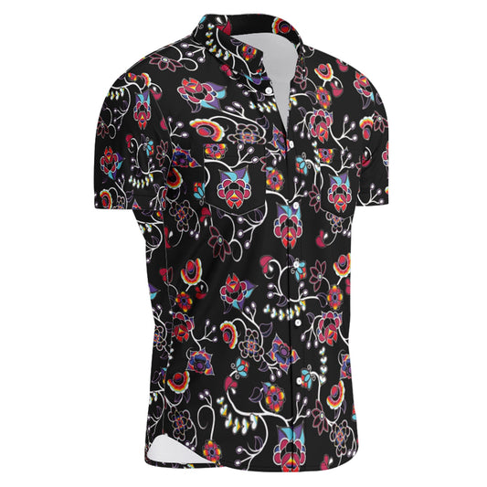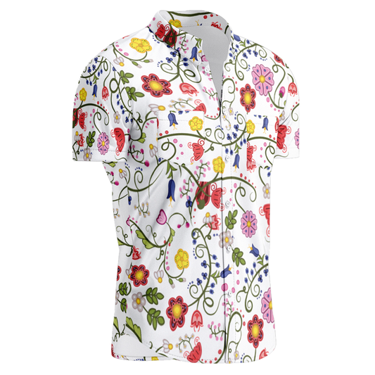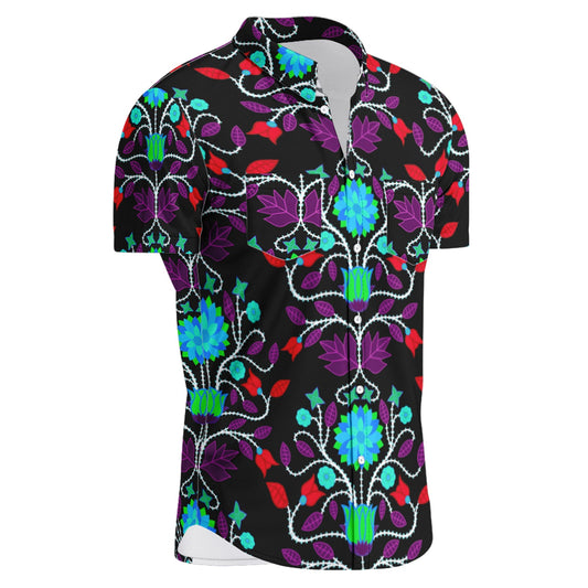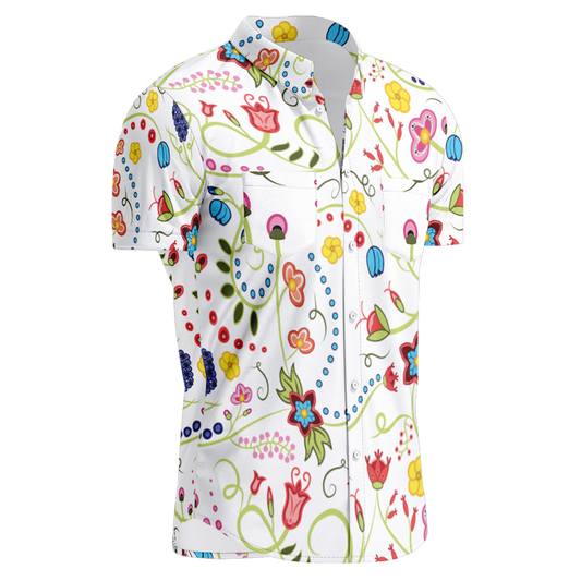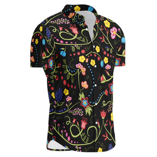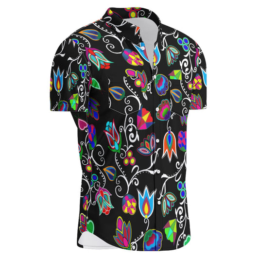 Floral Beadwork Four Clans Hawaiian-Style Button Up Shirt