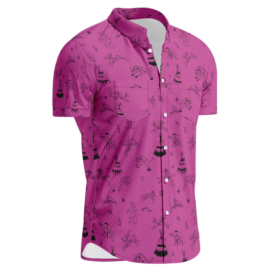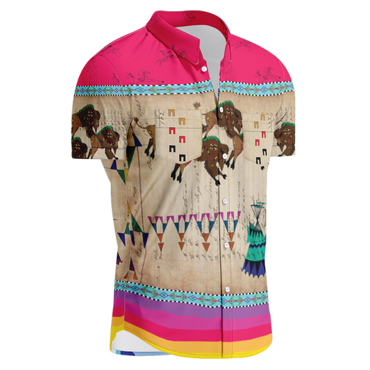Buffalos Running Berry Hawaiian-Style Button Up Shirt