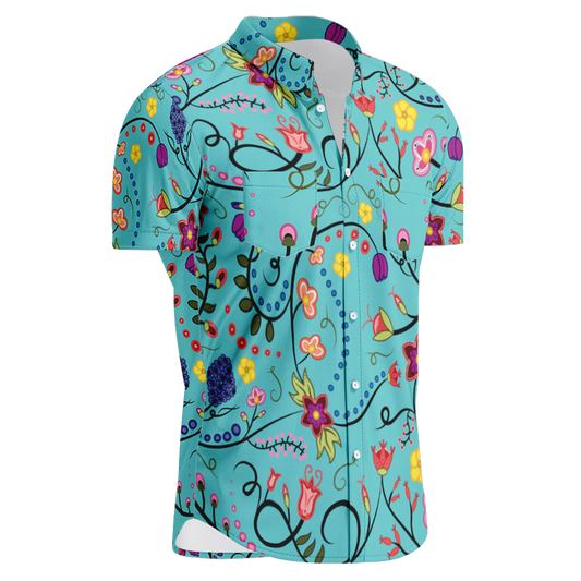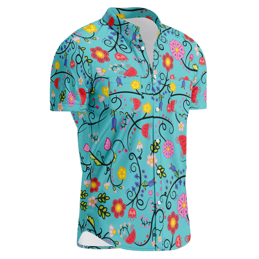 Fresh Fleur Sky Hawaiian-Style Button Up Shirt