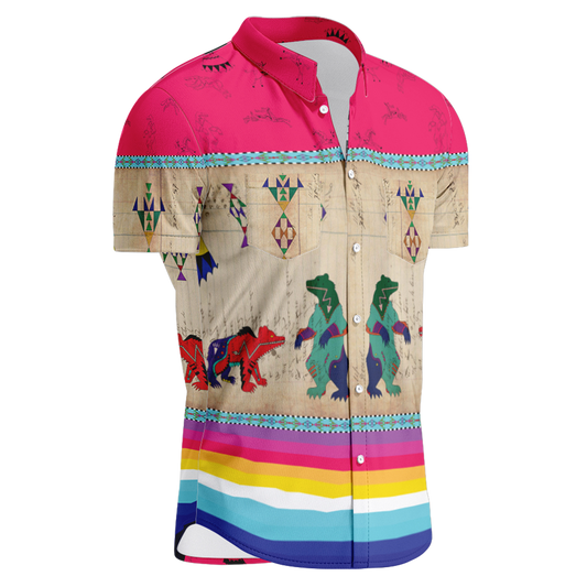 Bear Ledger Berry Hawaiian-Style Button Up Shirt