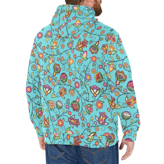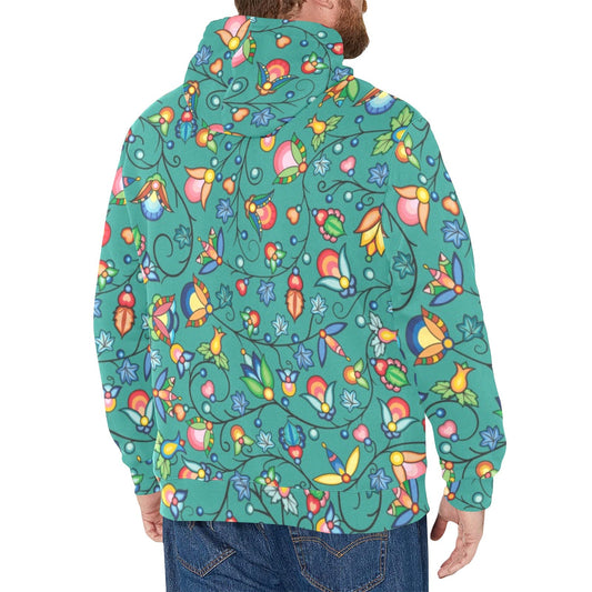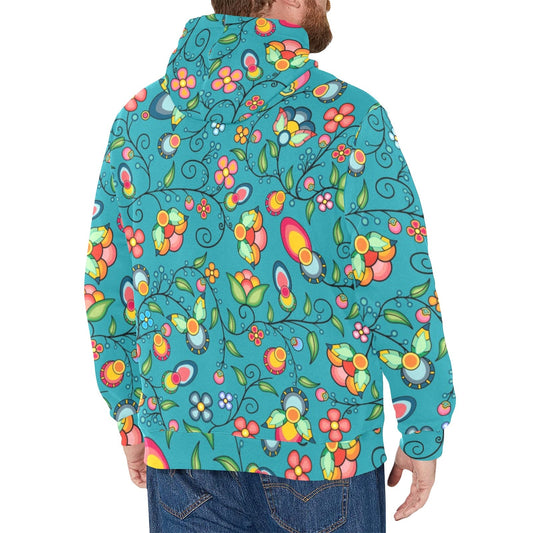 Floral Bounty Teal Men's Long Sleeve Fleece Hoodie