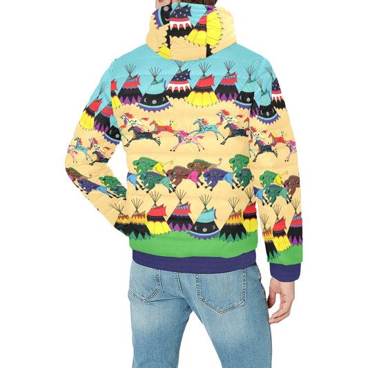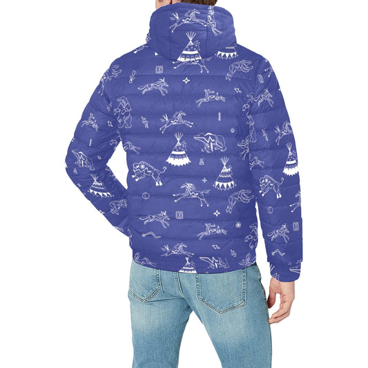 Horses and Buffalo Ledger Blue Men's Padded Hooded Jacket
