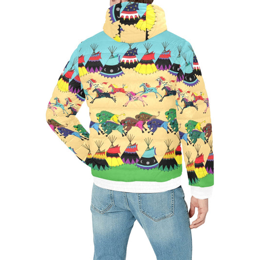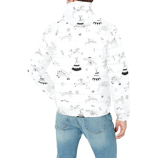 Horses and Buffalo Ledger White Men's Padded Hooded Jacket