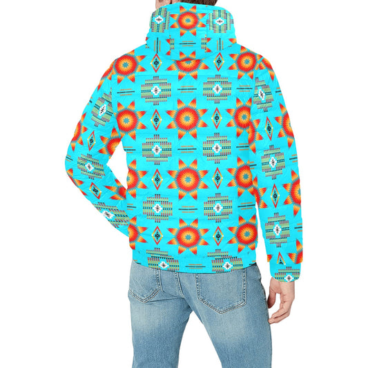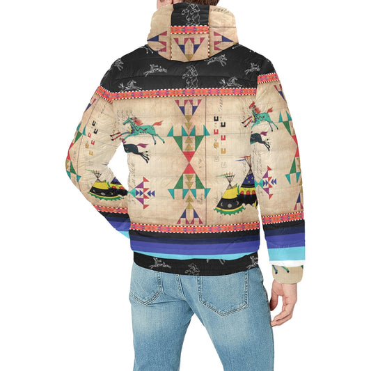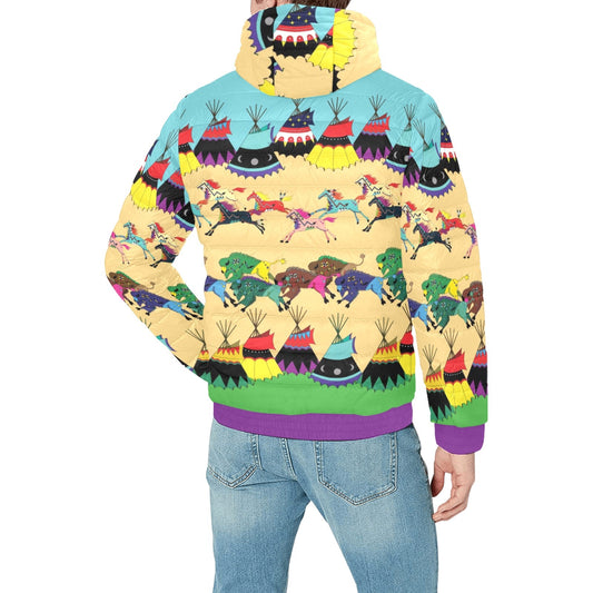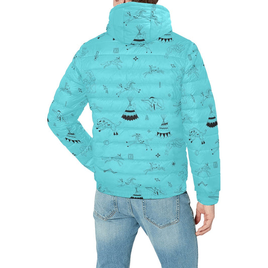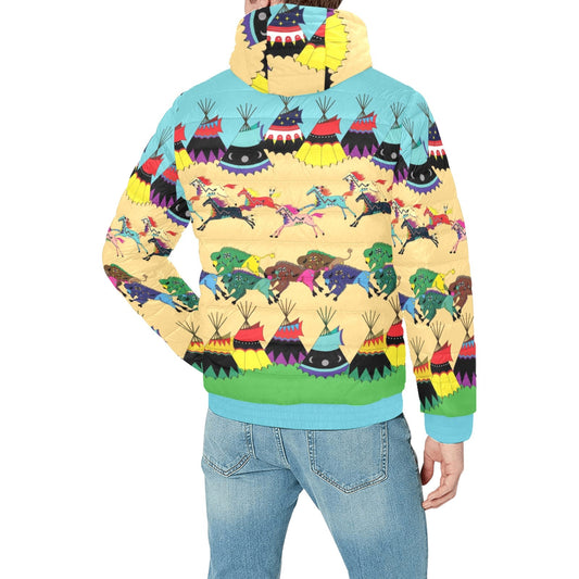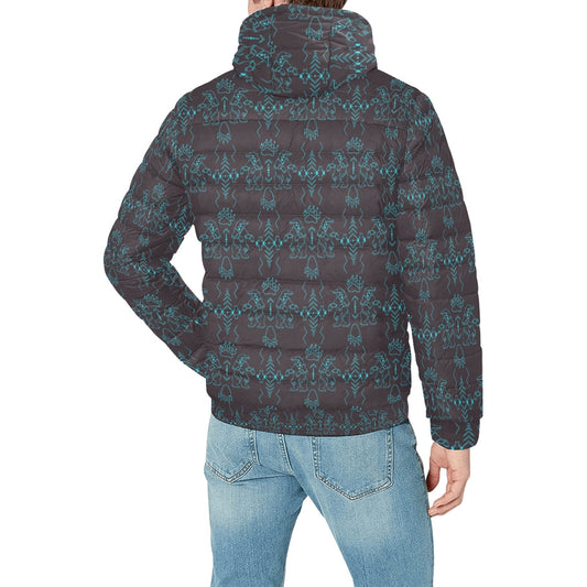 Horses and Buffalo Ledger Torquoise Men's Padded Hooded Jacket