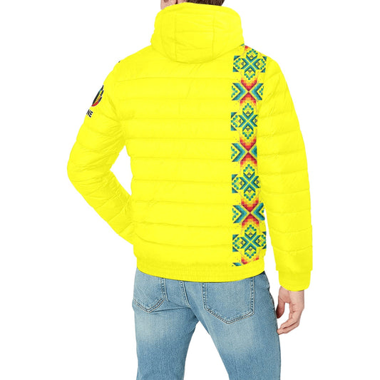 Yellow Blanket Strip Men's Padded Hooded Jacket