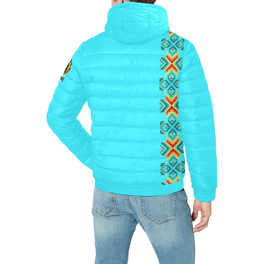 Turquoise Blanket Strip Men's Padded Hooded Jacket