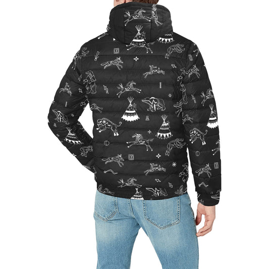 Writing on Stone Black and White Men's Padded Hooded Jacket