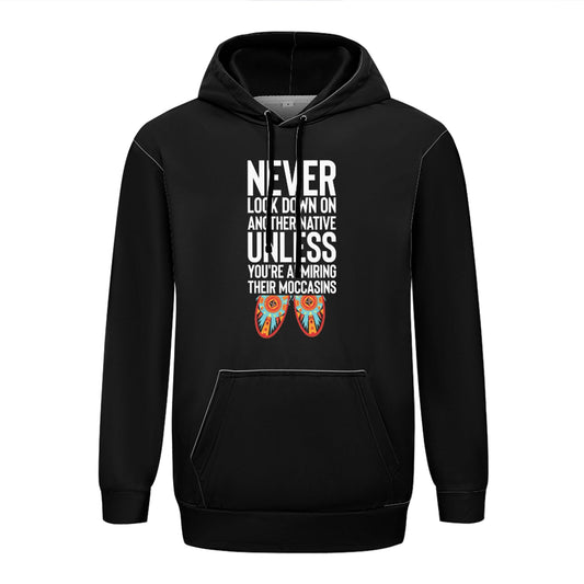 Never Look Down on Another Native 49Dzine Novelty Hoodie