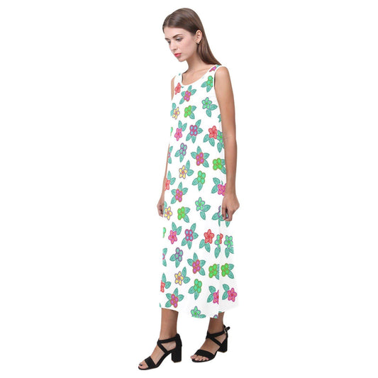 Berry Flowers White Phaedra Sleeveless Open Fork Long Dress