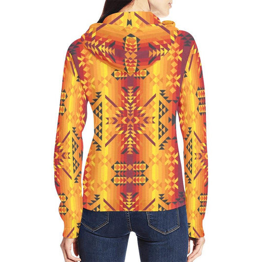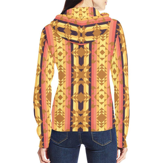 Desert Geo Yellow Red Full Zip Hoodie for Women