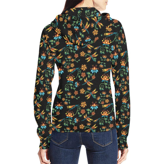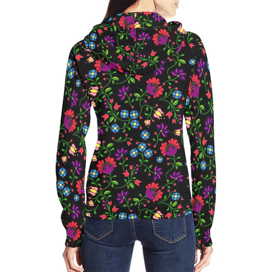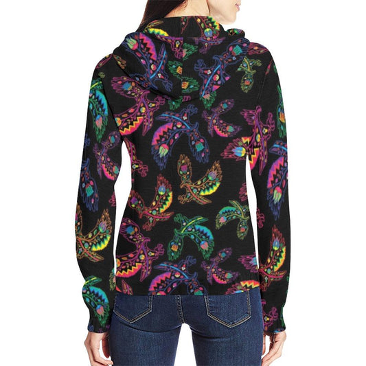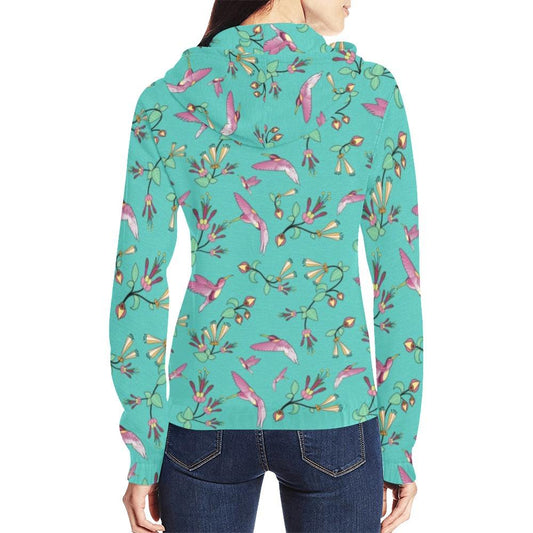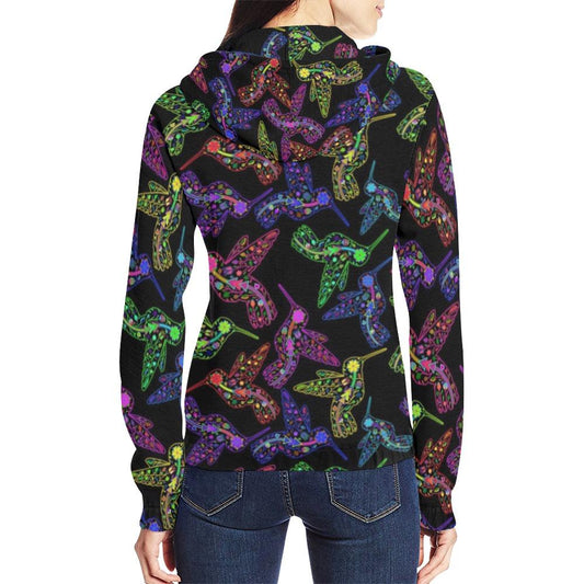 Neon Floral Hummingbirds Full Zip Hoodie for Women