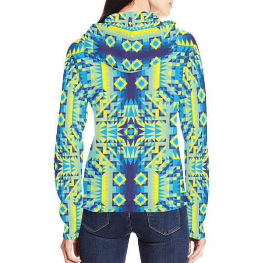 Kaleidoscope Jaune Bleu Full Zip Hoodie for Women