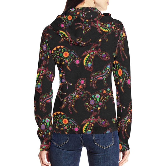 Regular price $45.00 USDRegular priceUnit price / perSale price $45.00 USDNeon Floral Wolves Full Zip Hoodie for Women