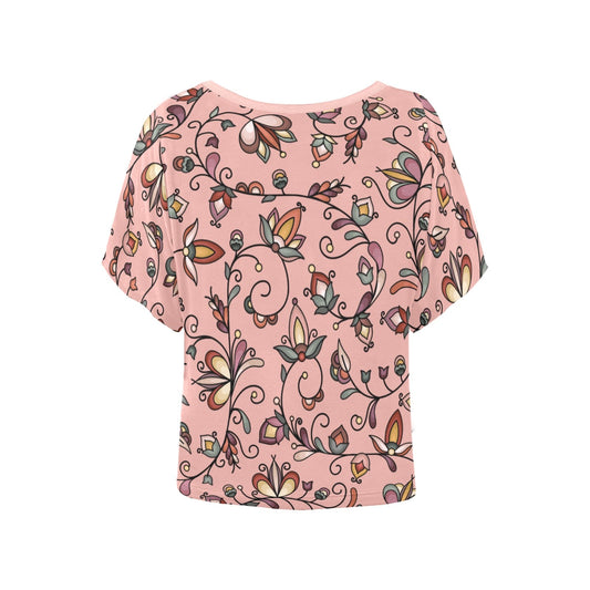 Copper Prairie Petals Pink Women's Batwing-Sleeved Blouse T shirt